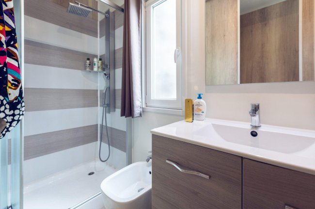 La struttura si suddivide in area villaggio e in area camping: piazzole con servizi igienici centrali con acqua calda gratuita, dove sono ubicate la lavatrice e la stireria; villini in muratura e case mobili in legno, tutti con tv e climatizzatore.